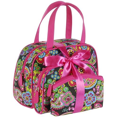 This cosmetic dome bag set by Stone & Co. consists of three differentsized cosmetic bags. Cosmetic bags have a paisley & floral print and hot pink trim. The largest bag has double handles. Bags measure 6.5" x4", 7.5" x 5", and 9" x 7".Stone & Co. Paisley Garden Dome Cosmetic Bags PINK MULTI Features